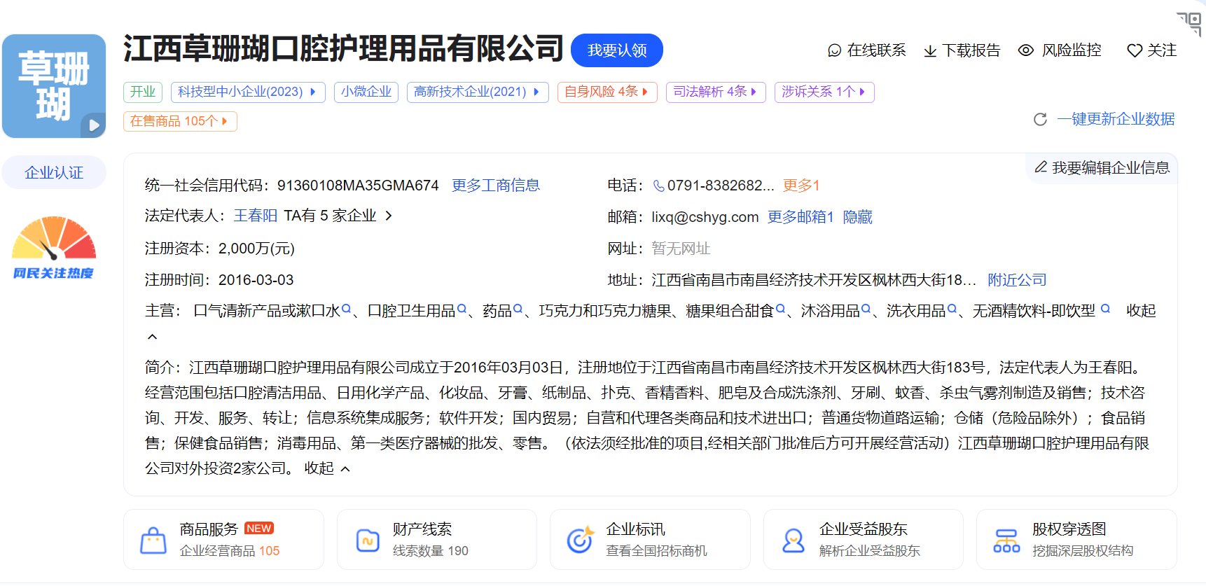 许海燕,担任江西草珊瑚口腔护理用品有限公司等公司高管。